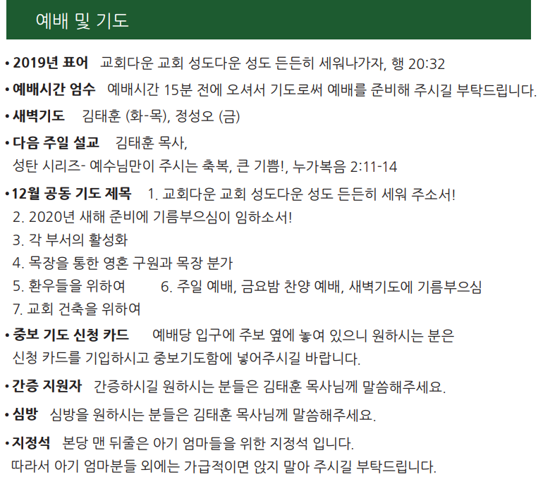 [2019.12.01] 교회 소식